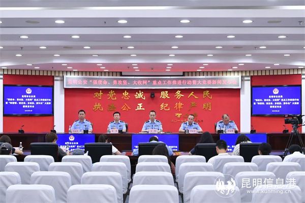昆明市公安局警令部、交警支隊、刑偵支隊、治安支隊相關負責人出席新聞發(fā)布會。(昆明市公安局供圖)