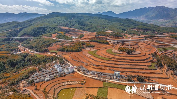 紅土地在云南是常見的顏色,不僅有聞名遐邇的東川紅土地,在旅途中不經(jīng)意也會邂逅一片熱烈的紅,圖為春播前的會澤縣大橋鄉(xiāng),紅土地、村莊、青山,組成了一幅天然畫卷。