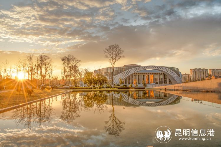 清晨日出時分,明亮的陽光為云南大劇院鍍上了一層暖橙色。明媚的陽光,是彩云之南最治愈的色彩之一。