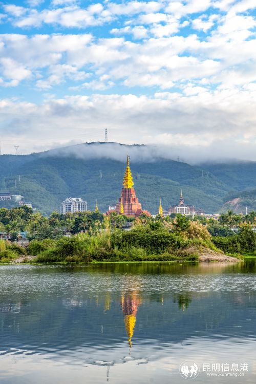 清晨的景洪,清清的瀾滄江水倒映著大金塔,美如油畫。