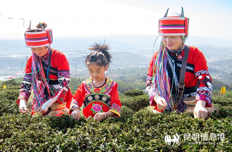 彝族小姐妹在采茶。