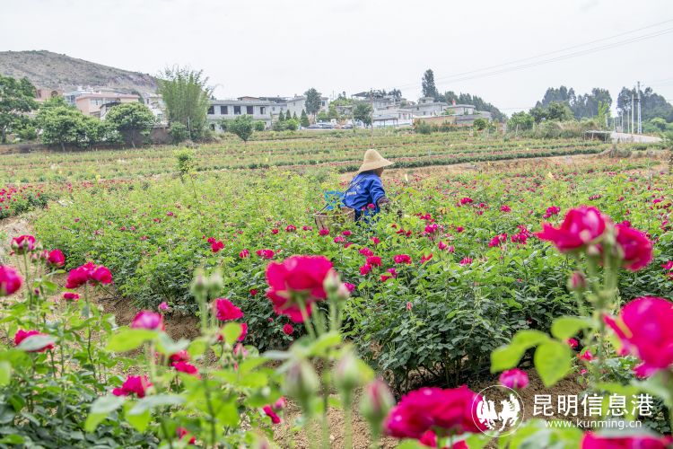 昆明安寧玫瑰山谷的村民正在采收玫瑰花,空氣中都是花香。