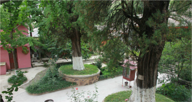 乾隆二十三年(1758年),義寧及湯丹廠捐資對圣武廟進行重修擴建,建成后改稱云峰寺。云峰寺為二進院結構建筑,二進院已被拆除,一進院內(nèi)現(xiàn)存明柏二棵,相傳植于明永歷年間。民間有古柏曾化作弟兄二人進京赴試高中的傳說。