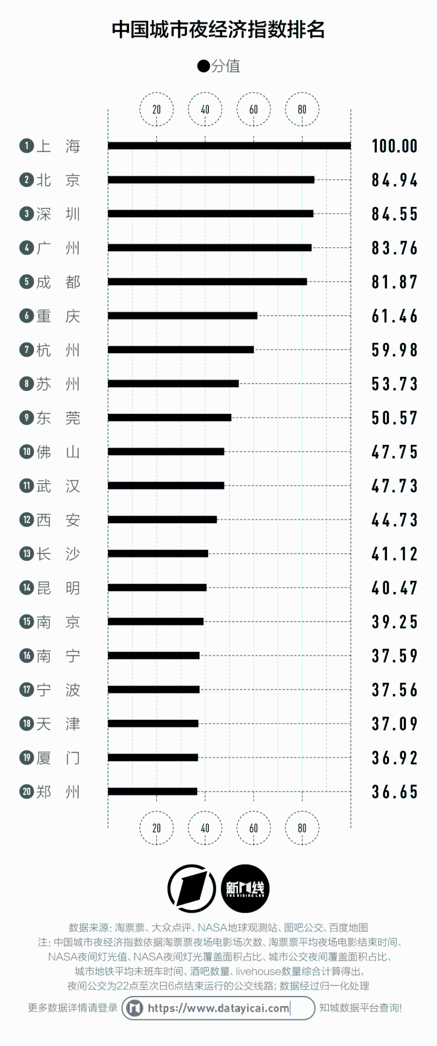 以下為2023各城市夜生活指數(shù)排名完整結果:
