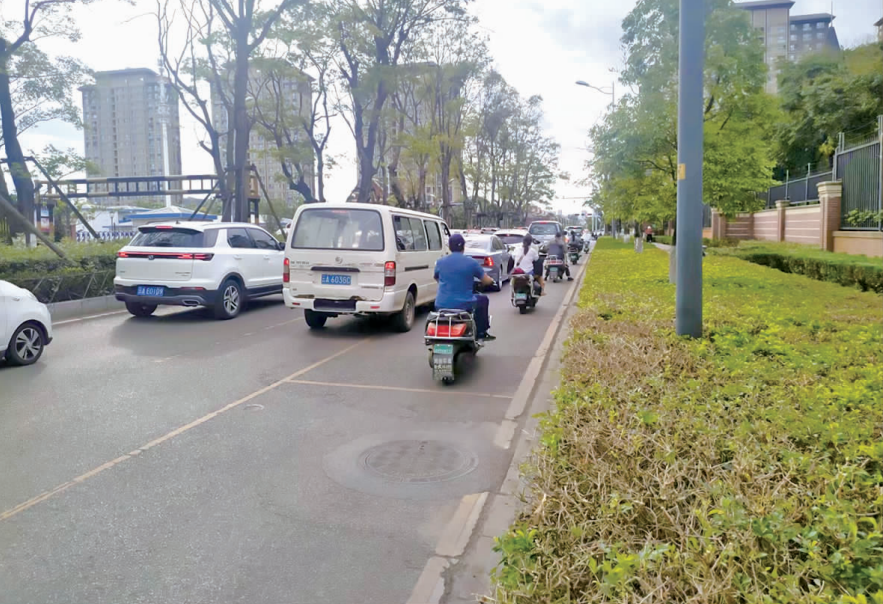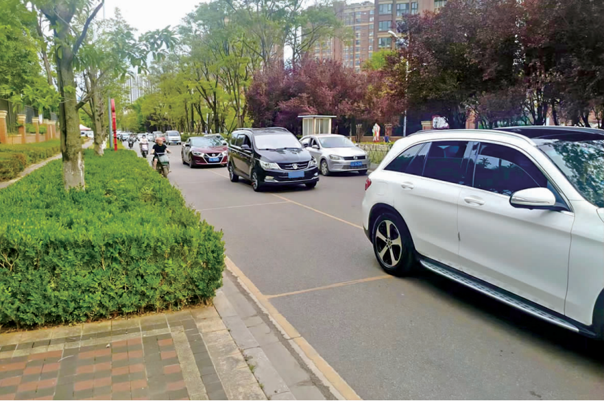 過往的車輛逐漸多了起來,記者觀察到,靠近路口的道路是雙車道,而“停車位”已占據(jù)了一條車道,在高峰期,車流相當(dāng)密集,停車幾乎無法實(shí)現(xiàn),違法停車只會造成嚴(yán)重?fù)矶?。“這些車位影響到公共道路通行,小區(qū)物業(yè)應(yīng)該及時處理,但到目前為止,沒有覆蓋或清除這些停車標(biāo)線,誤導(dǎo)了司機(jī)。后續(xù),我們交警將會與小區(qū)物業(yè)對接,檢查相關(guān)批文看是否合規(guī),取消不規(guī)范的標(biāo)線?!倍啪僬f。