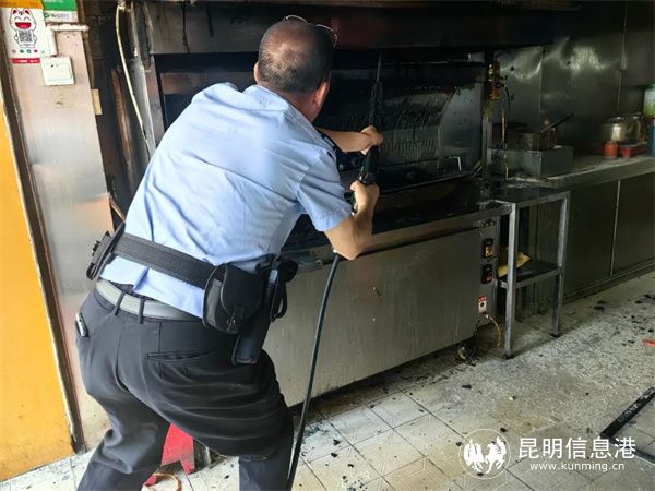 6月27日上午,小南門派出所61號(hào)巡邏車民輔警,巡邏至華山東路113號(hào)一燒烤店時(shí),發(fā)現(xiàn)店鋪油煙機(jī)起火。見勢(shì),民輔警立即引導(dǎo)疏散圍觀群眾至安全區(qū)域,同時(shí)取來車上的備用滅火器滅火,火勢(shì)得以控制并成功撲滅,避免了火災(zāi)事故發(fā)生。為了防止復(fù)燃,民警還對(duì)油煙機(jī)進(jìn)行了詳細(xì)檢查清理,確保完全排除火災(zāi)隱患。