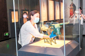 圖為云南省博物館工作人員正在擺放?;~案準(zhǔn)備展出。云南省博物館供圖