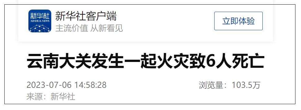 據(jù)云南省大關(guān)縣人民政府新聞辦公室通報(bào),7月6日0時30分左右,大關(guān)縣天星鎮(zhèn)朝陽社區(qū)一民房發(fā)生火災(zāi),導(dǎo)致6人死亡。