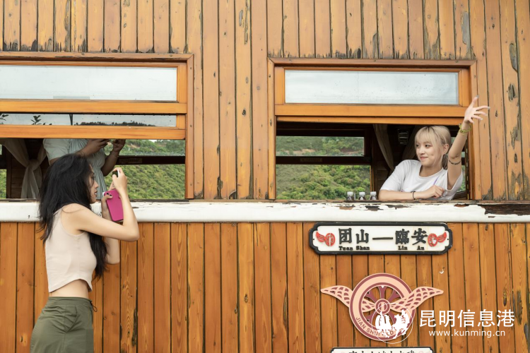 遠處的小火車轟鳴著駛來,古城黃的車身明亮耀眼,木質(zhì)結(jié)構(gòu)車廂充滿復古感,置身其中像穿越回到了上個世紀40年代。建水團山車站是建水古城米軌火車復古之旅的終點站,也是當?shù)刂糜尉包c之一,吸引著網(wǎng)絡(luò)名人們駐足打卡。