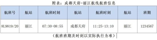 據(jù)了解,祥鵬航空成都天府往返麗江航線,計(jì)劃每天執(zhí)飛1班,麗江前往成都天府航班號(hào)為8L9620,起飛時(shí)間為7時(shí)30分,抵達(dá)成都天府時(shí)間為8時(shí)55分;返程航班號(hào)為8L9619成都天府起飛時(shí)間為11時(shí)25分,抵達(dá)麗江時(shí)間為13時(shí)10分(航班班期及時(shí)刻以實(shí)際執(zhí)行為準(zhǔn))。