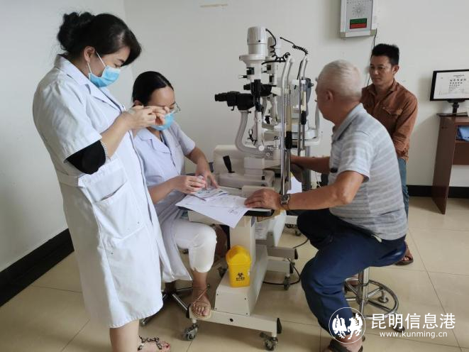 昆明艾維眼科醫(yī)院眼底病科科主任何雨檀為患者檢查