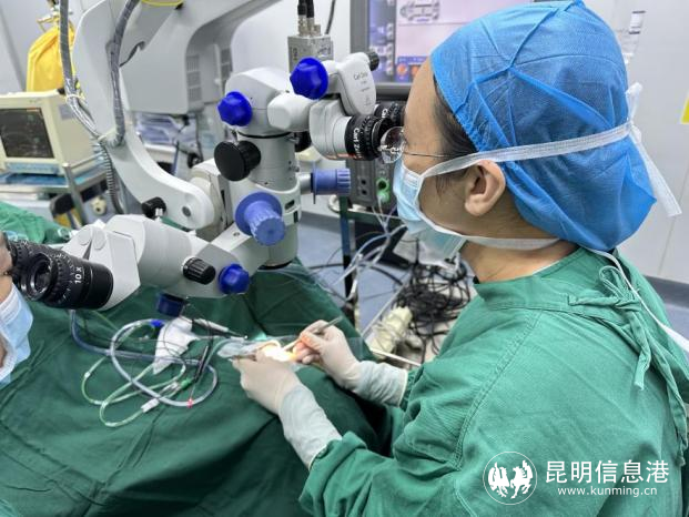 昆明艾維眼科醫(yī)院眼底病科科主任何雨檀為患者手術(shù)