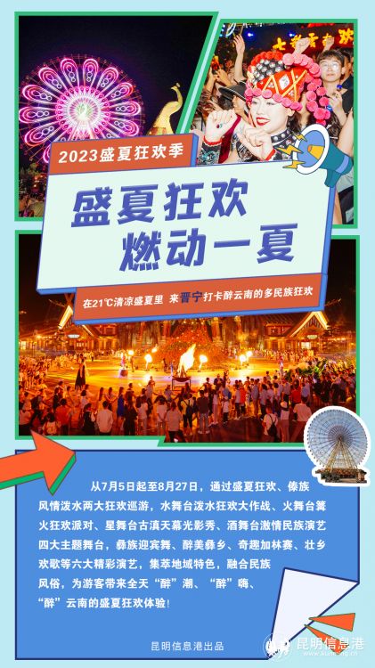 昆明信息港訊 記者李瑩 喻彬 制圖馮垚 7月11日,2023昆明鄭和文化旅游節(jié)拉開序幕,7大類26項豐富活動貫穿整年。開幕式當(dāng)天,“鄭和杯”越野摩托大獎賽、“繪彩古滇·花樣晉寧”兒童繪畫大賽等精彩活動搶先亮相。即日起至年底,晉寧玫瑰節(jié)、非遺民族民間藝術(shù)、特色美食展、美麗鄉(xiāng)村主題活動、盛夏狂歡季等精彩好戲?qū)⑤喎涎荨?/p>