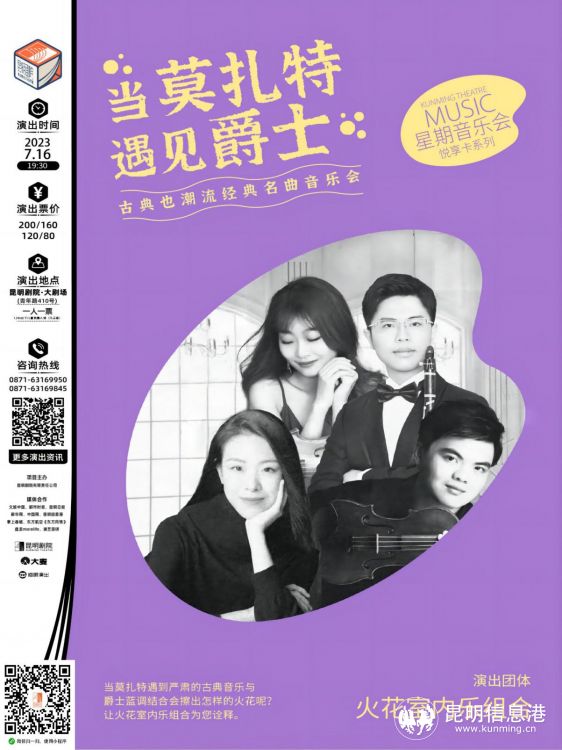 《當莫扎特遇見爵士——古典也潮流經(jīng)典名曲音樂會》,“火花室內(nèi)樂組合”將帶來對音樂全新的詮釋,年輕演奏家們打破界限,將古典樂和爵士樂完美融合,給聽眾不一樣的音樂體驗。在古典和爵士之間,在演奏家和觀眾們之間,找到了夢寐以求的平衡,換一種方式、換一個角度欣賞,或許這就是更能打動人心的音樂。
