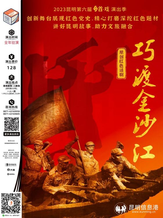 讓觀眾解鎖文藝版黨建活動,讓主題黨日更具活力!2023年,紅色主題話劇《巧渡金沙江》將常駐昆明劇院·小劇場,全年接受冠名和包場,并可根據(jù)活動主辦方要求,舉辦主題學習等定制活動。