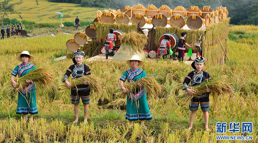 哈尼族群眾慶祝豐收(資料圖)。新華網(wǎng)發(fā)(元陽(yáng)縣融媒體中心 供圖)
