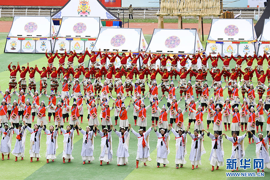 云南迪慶·香格里拉2023年端午賽馬節(jié)開(kāi)幕式現(xiàn)場(chǎng),人們載歌載舞共同慶祝節(jié)日的到來(lái)(6月22日攝)。新華網(wǎng)發(fā)(迪慶日?qǐng)?bào)社 供圖)