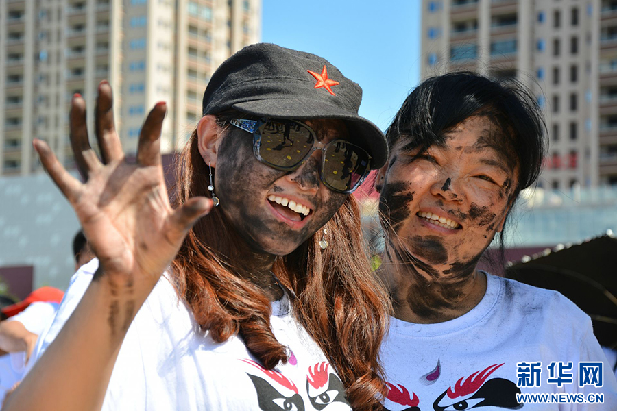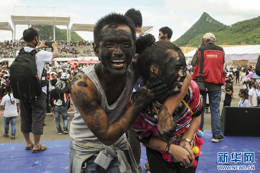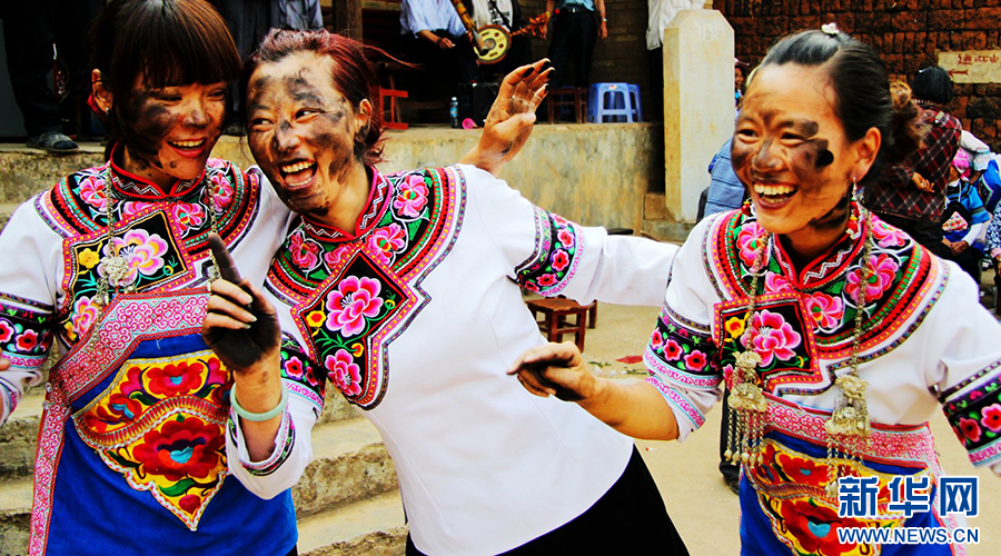 “花臉節(jié)”現(xiàn)場(chǎng),人們互相抹黑臉部祈愿吉祥(資料圖)。新華網(wǎng)發(fā)(李明 攝)