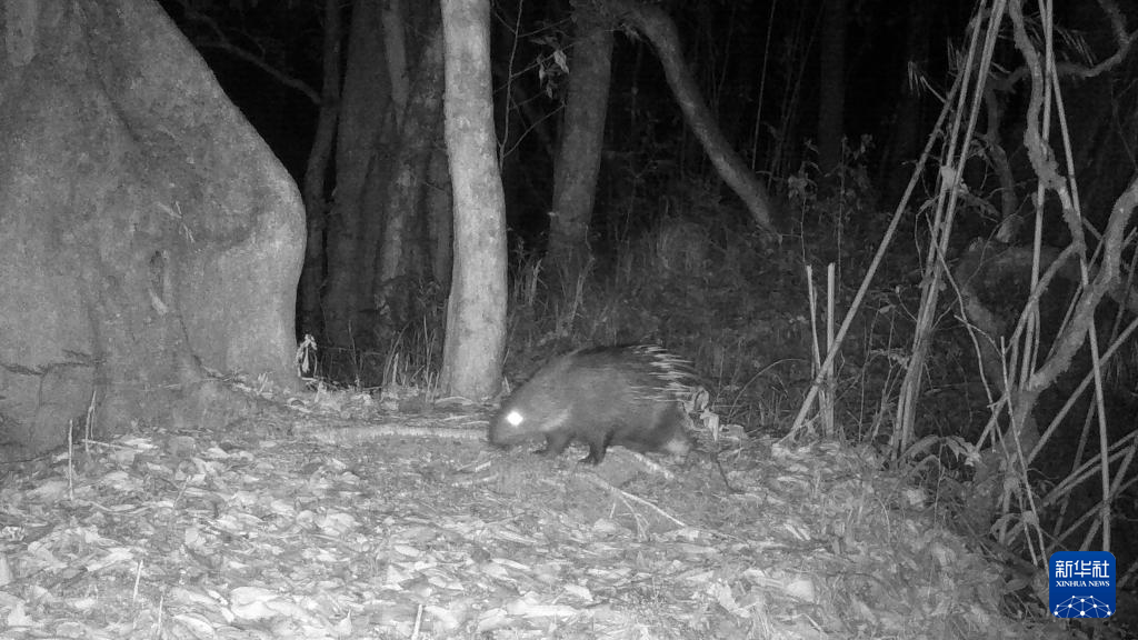這是在高黎貢山國(guó)家級(jí)自然保護(hù)區(qū)用紅外相機(jī)拍攝到的豪豬(2022年3月25日攝)。