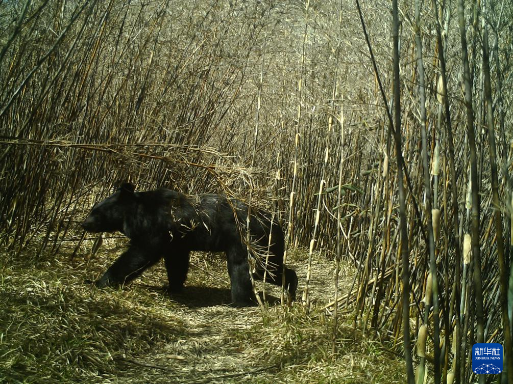 這是在高黎貢山國(guó)家級(jí)自然保護(hù)區(qū)用紅外相機(jī)拍攝到的黑熊(2023年4月9日攝)。