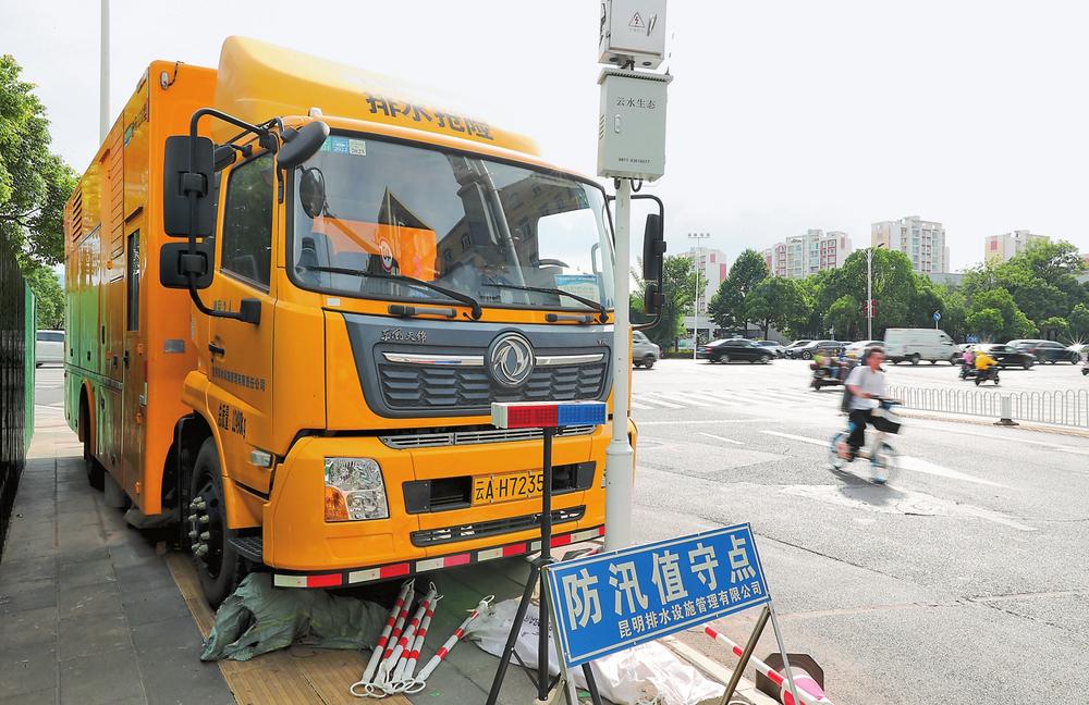 街頭防汛值守點(diǎn)。云南日?qǐng)?bào)記者黃興能/攝
