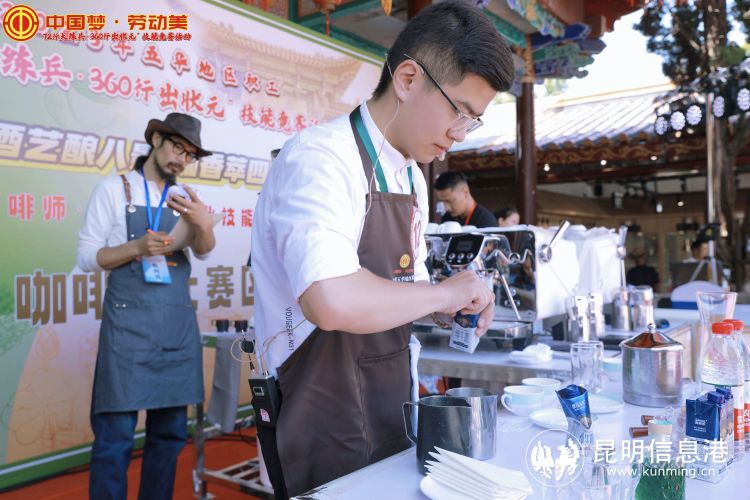 昆明信息港訊 記者張玉玲 為進(jìn)一步提升五華地區(qū)職工職業(yè)技能素質(zhì),促進(jìn)職工不斷提高技術(shù)水平和創(chuàng)新能力,7月15日,由云南省咖啡行業(yè)協(xié)會(huì)指導(dǎo),五華區(qū)人才工作領(lǐng)導(dǎo)小組辦公室、五華區(qū)總工會(huì)、五華區(qū)人力資源和社會(huì)保障局主辦,云南眾聯(lián)教育投資集團(tuán)有限公司承辦的2023年五華地區(qū)職工“72行大練兵·360行出狀元”咖啡師調(diào)酒師職業(yè)技能競(jìng)賽在昆明市翠湖蓮花禪院、墨翠酒廊成功舉辦。