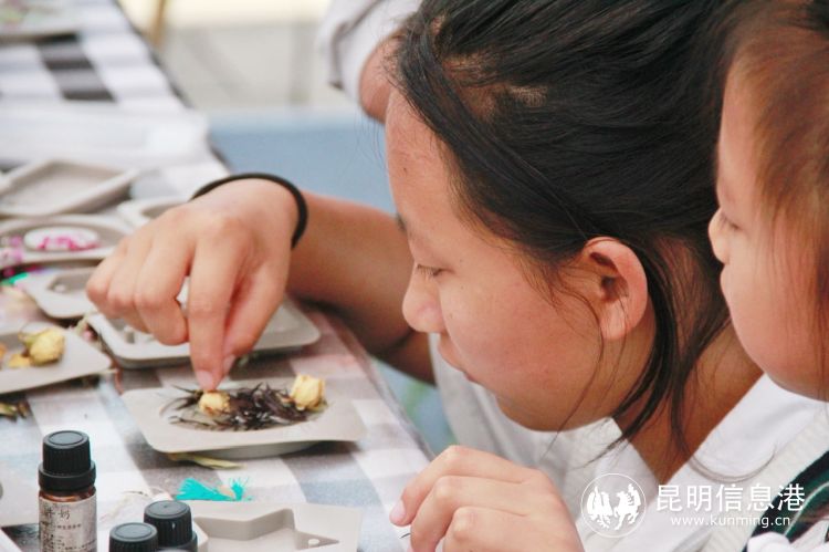 舞臺(tái)上的歌聲悠揚(yáng)婉轉(zhuǎn),舞臺(tái)下“花旅寶峰”活動(dòng)同樣繽紛多彩。體驗(yàn)專(zhuān)區(qū)集花束制作、花卉團(tuán)扇制作、古法造紙、鵝卵石畫(huà)、陶藝制作等活動(dòng)為一體,邀請(qǐng)市民和游客在共同感受非遺文化的精彩,在親手體驗(yàn)中領(lǐng)略民間藝術(shù)綻放的別樣魅力。