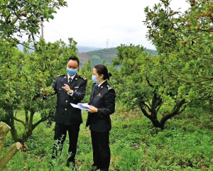 海關(guān)關(guān)員在果園現(xiàn)場考核 通訊員 鄒琨 圖