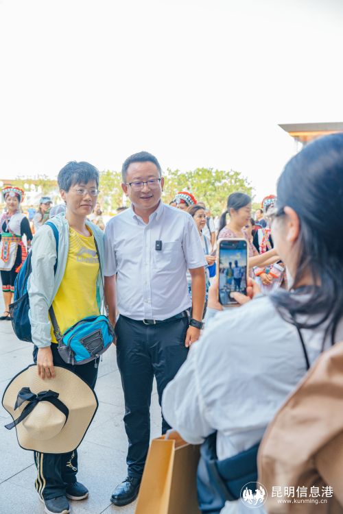 昆明信息港訊 記者昝娟娟 7月16日,彌勒市葡萄文化節(jié)開幕當天,彌勒市委副書記、市長潘金軍來到彌勒高鐵站,開展“樂享一夏·約你狂歡”迎客活動,帶頭向游客宣傳推介彌勒,真誠歡迎八方游客來到彌勒,祝他們在彌勒享受愉快假期。