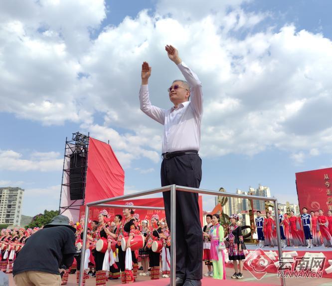 “起來,不愿做奴隸的人們……我們?nèi)f眾一心,冒著敵人的炮火,前進(jìn)!冒著敵人的炮火,前進(jìn)!前進(jìn)!前進(jìn)!進(jìn)!”慷慨激昂的旋律響起,7月17日,“第七屆聶耳音樂周”開幕式在國(guó)歌曲作者聶耳的故鄉(xiāng)玉溪拉開帷幕。