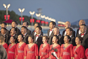 昆明云嶺之聲合唱團和云南陽光童聲合唱團組成的88人合唱團,在交響樂和民樂的伴奏下進行演唱,合唱組曲《大路歌》《畢業(yè)歌》等鏗鏘有力、童聲合唱組曲《賣報歌》等真摯熱烈……伴隨著樂曲《滇池圓舞曲》,開幕式音樂會氣氛達到高潮,23名舞者從觀眾席中依次走上舞臺,翩翩起舞。音樂會尾聲,伴著昆明聶耳交響樂團演奏的樂曲,全場激情澎湃地合唱《黃河大合唱》,奏響時代強音。