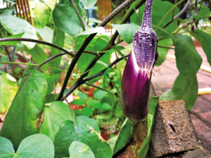 萬(wàn)溪沖小學(xué)“開心小農(nóng)場(chǎng)”里種的茄子 供圖