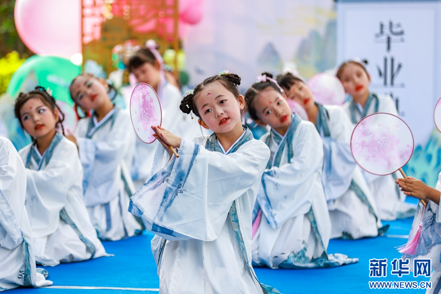 小朋友們表演國風舞蹈(攝于7月14日)。新華網(wǎng)發(fā)(陶家淇 攝)