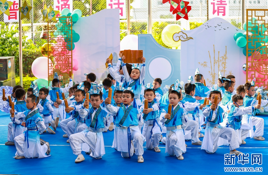 小朋友們將《弟子規(guī)》融入表演(攝于7月14日)。新華網(wǎng)發(fā)(陶家淇 攝)