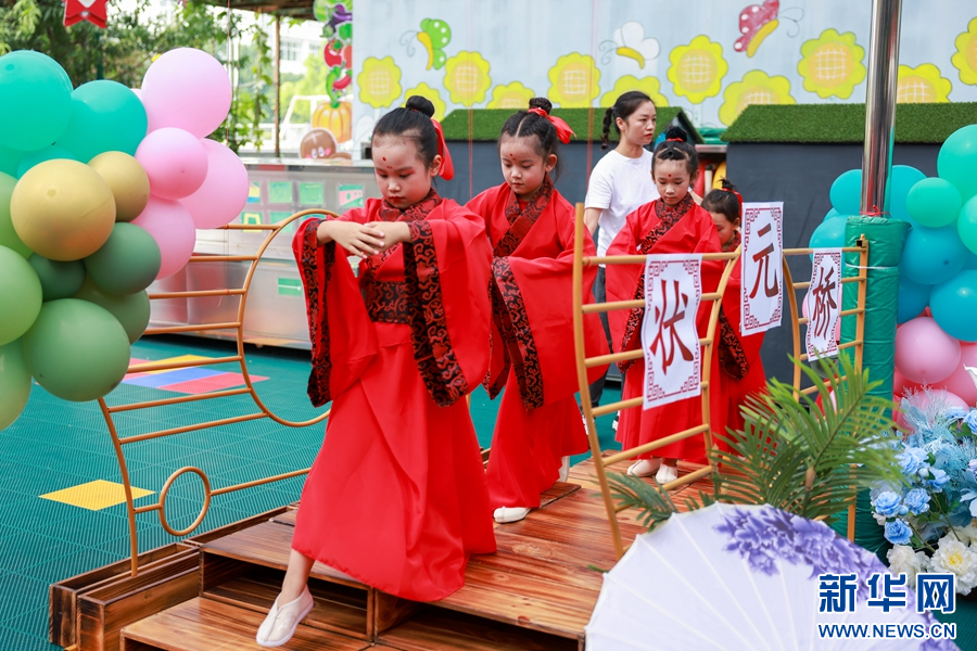 7月14日,云南省紅河哈尼族彝族自治州開遠市第二幼兒園為即將畢業(yè)的小朋友們舉行了傳統(tǒng)“開筆禮”儀式,通過朱砂啟智、擊鼓明志、啟蒙描紅等環(huán)節(jié),讓即將步入小學的孩子們體驗傳統(tǒng)文化,“破蒙啟智,人生始立”,為未來的求學生涯樹立一個有意義的起點。(劉雅龍)
