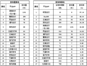 “滴滴出行(花小豬)”“曹操出行”“民途出行”投訴總量排前三