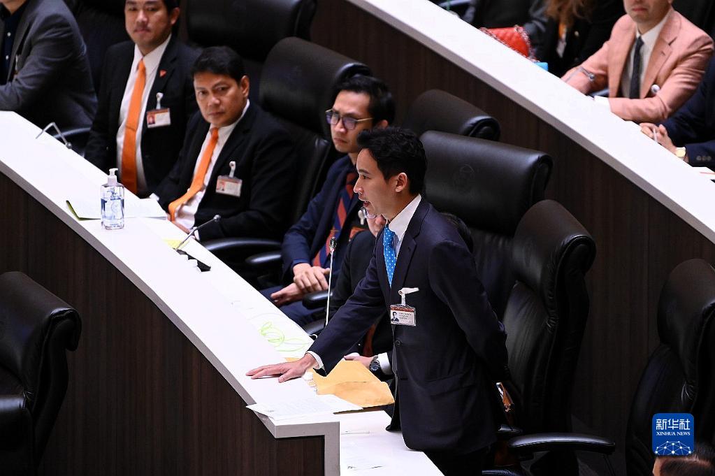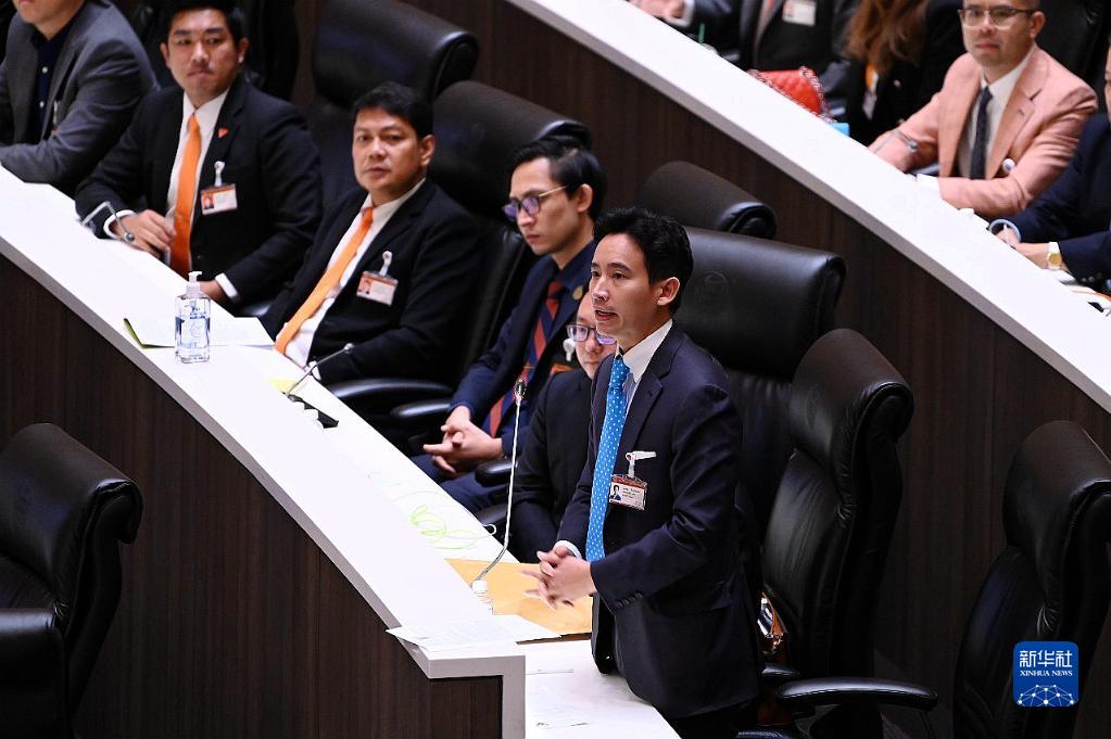 7月19日,在泰國(guó)首都曼谷,遠(yuǎn)進(jìn)黨黨魁皮塔在國(guó)會(huì)發(fā)言。新華社發(fā)(泰國(guó)國(guó)會(huì)供圖)