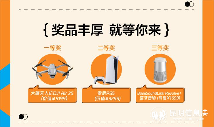 除了有云南移動(dòng)新媒體矩陣幫助和抖音流量扶持外,參加動(dòng)感星主播大賽還有價(jià)值5199元的大疆無人機(jī)DJI Air、價(jià)值3299元的索尼PS5、價(jià)值1699元的BseSoundLink Revolve+藍(lán)牙音箱等豐厚獎(jiǎng)品等你來拿!