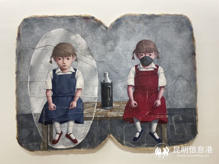 策展人之一的鞠白玉表示,張曉剛的繪畫與文學(xué)世界的鏡像,就像普魯斯特所說的“我們在一個世界里感受,在另一個世界里命名”,他歷史的、文化的、社會的、個人的這些經(jīng)驗決定著他獨特的心靈感受。本次展覽在展廳布置上一樓采用了大色塊的設(shè)計,綠白相間的墻壁具有懷舊氣息,二樓采用了老式電視機等元素,與張曉剛作品的結(jié)合,旨在激發(fā)觀眾的創(chuàng)造力與想象力,與觀眾共同參與到對社會與人生的思考之中,使得此次昆明展覽更具有深度和啟發(fā)。