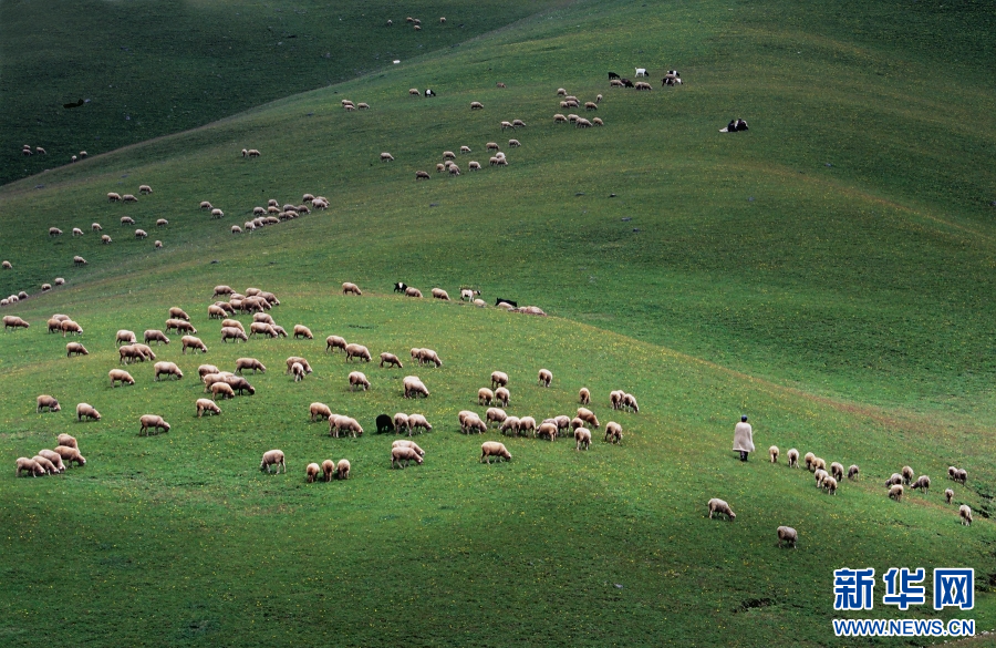羊群悠閑地在草原上吃草(資料圖)。新華網(wǎng)發(fā)(王良忠 攝)