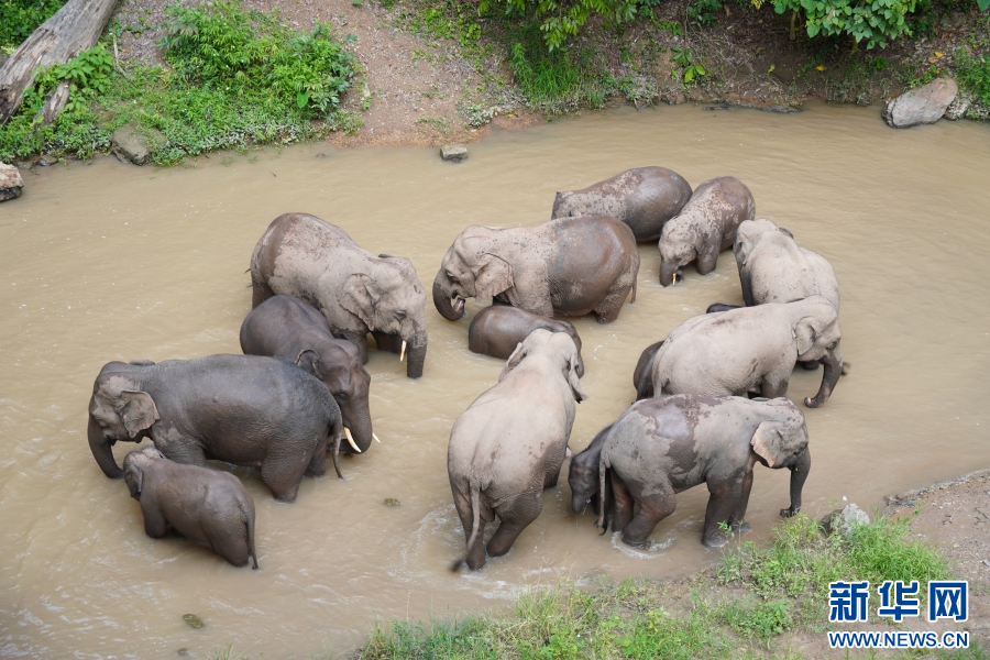 野象家族在河道取食、嬉戲(7月13日攝)。新華網(wǎng) 柴靜 攝