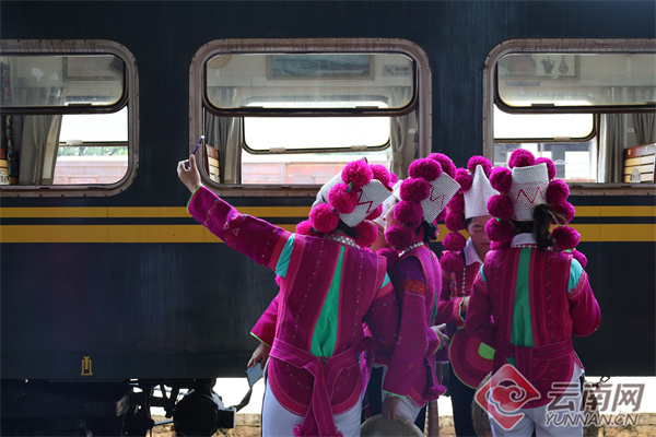 開(kāi)遠(yuǎn)火車站同時(shí)還推出具有當(dāng)?shù)孛褡逄厣姆沁z圖片展和彝族歌舞表演。展出開(kāi)遠(yuǎn)區(qū)域內(nèi)近百?gòu)埛俏镔|(zhì)文化遺產(chǎn)和百年米軌照片,全方位、多層次地展示當(dāng)?shù)胤沁z項(xiàng)目的獨(dú)特魅力,助推優(yōu)秀傳統(tǒng)文化走到群眾身邊,讓廣大群眾充分領(lǐng)略非遺之美。