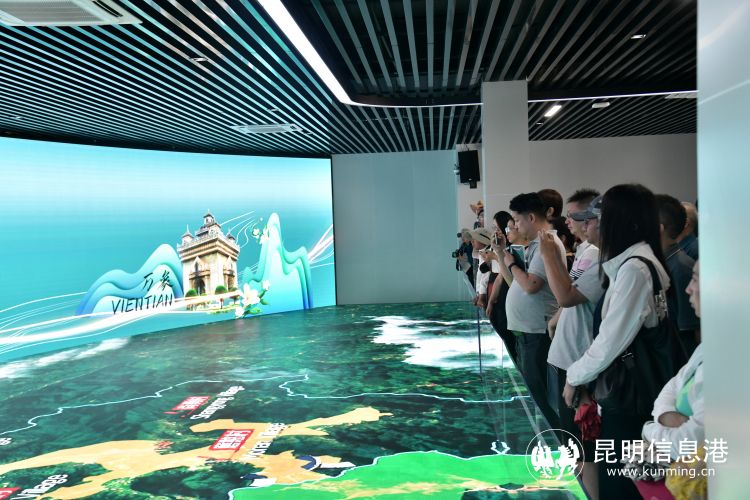 調(diào)研組在磨憨口岸智慧展示中心內(nèi)考察學(xué)習(xí)