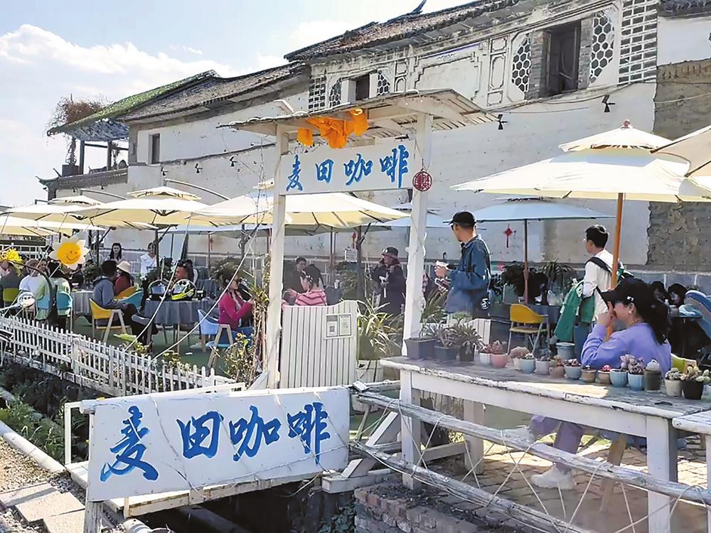 今年36歲的劉倩是騰沖人。大學(xué)畢業(yè)后,劉倩選擇回鄉(xiāng)創(chuàng)業(yè),出于對咖啡的熱愛,便在和順開了這家咖啡館。為提高咖啡制作技術(shù),開店前,劉倩曾到昆明培訓(xùn)。保山市盛產(chǎn)云南小??Х龋柚a(chǎn)地優(yōu)勢,她和保山咖啡種植農(nóng)戶建立合作,每年在咖啡豆成熟前,到產(chǎn)地收購生豆、加工。隨著旅游復(fù)蘇,游客順著網(wǎng)友點評慕名而來,小店日銷上千單。小鎮(zhèn)年輕人對于咖啡的接受度和需求度明顯提高,趁著熱度,劉倩已經(jīng)在當(dāng)?shù)亻_了第二家店。