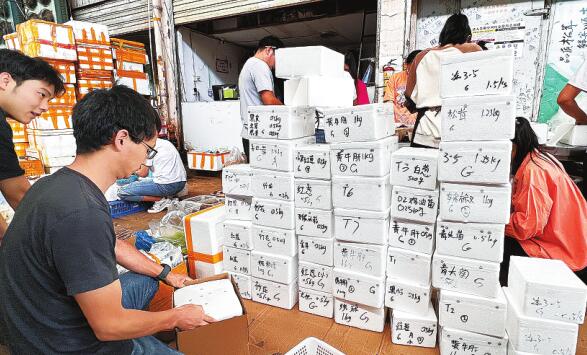 攤主張先生身后有一張桌子,快遞員在桌子邊嚴陣以待,一旦張先生完成交易,快遞員現(xiàn)場即可發(fā)貨,快至當天,遠在他鄉(xiāng)的人們就可以品嘗到云南的新鮮松茸了。