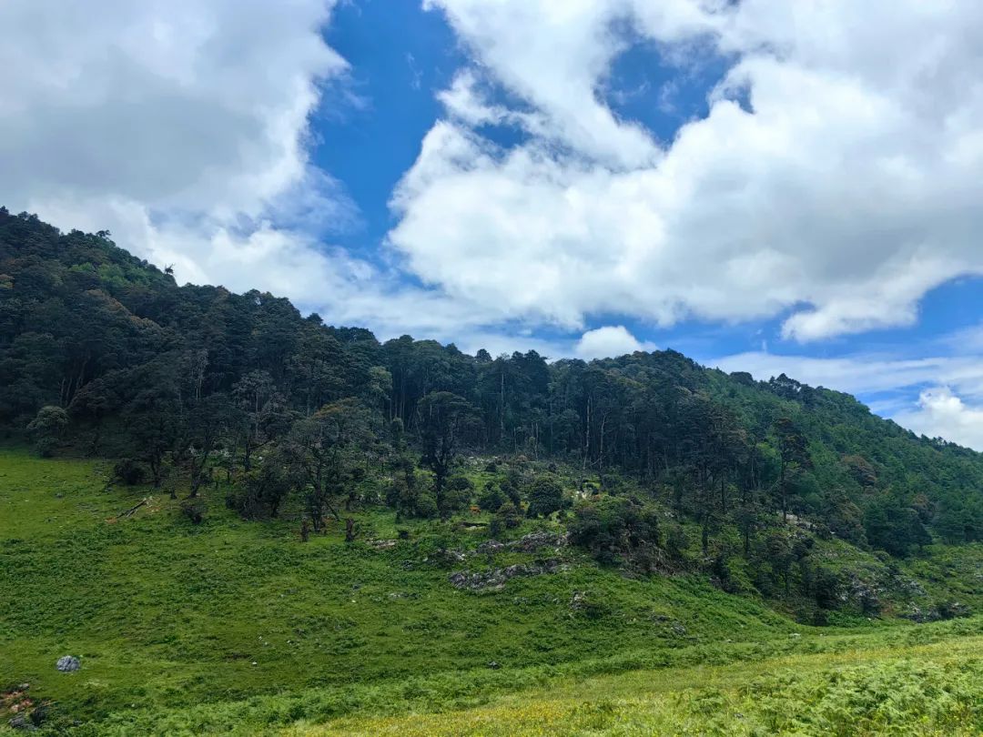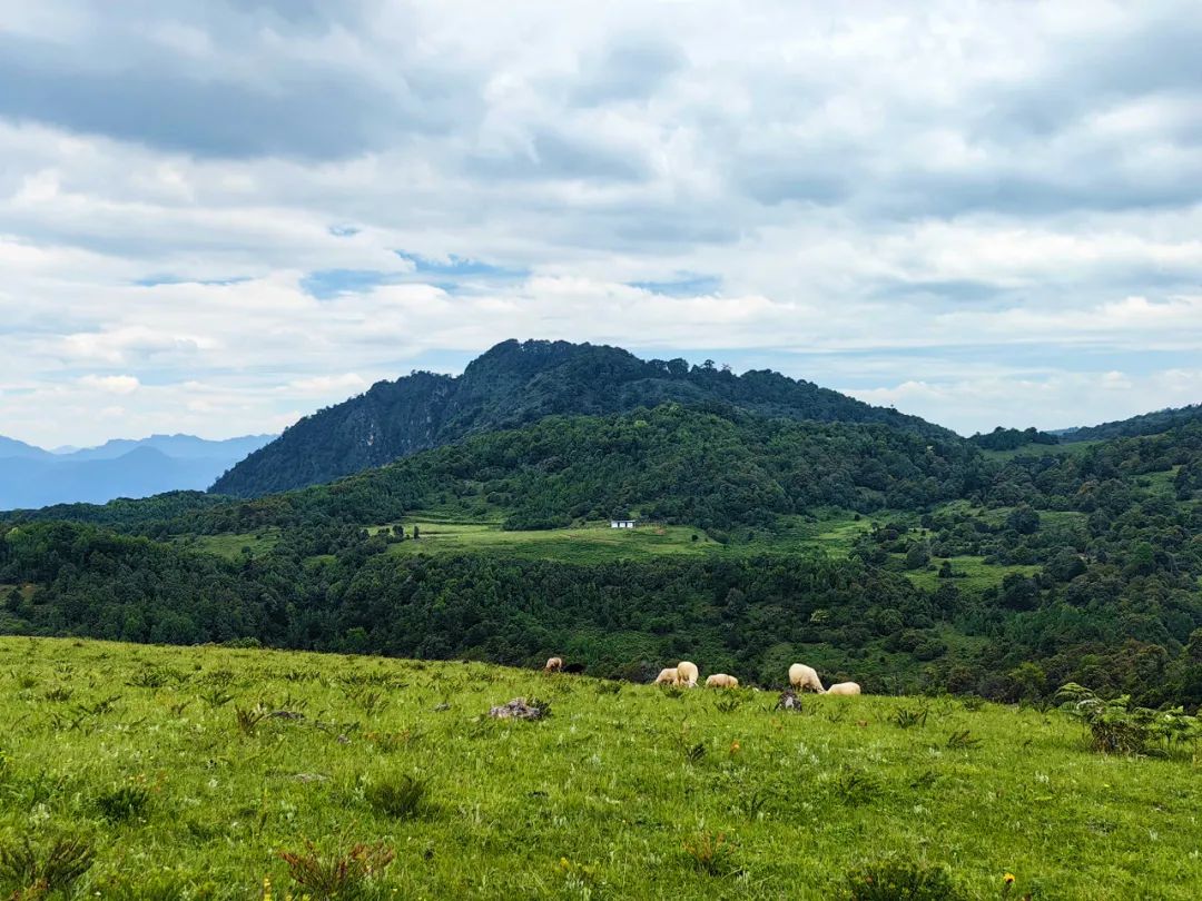 從永勝縣城往西驅(qū)車1.5小時,經(jīng)哨埡口沿著蜿蜒的盤山公路到達順州鎮(zhèn)和睦地村,是一個古老的納西族村寨,從白族語翻譯而來,譯為“云霧繚繞的地方”,大黑山就在村子背后。大黑山位于永勝縣西部,地處順州鎮(zhèn)會文村委會,最高點海拔3396米,是順州鎮(zhèn)境內(nèi)最高點,因海拔高,植被好,加上獨特的高寒氣候,形成了獨具特色的高山草甸,當(dāng)?shù)厝朔Q為“的士坪”,草甸上有四個出口而得名。