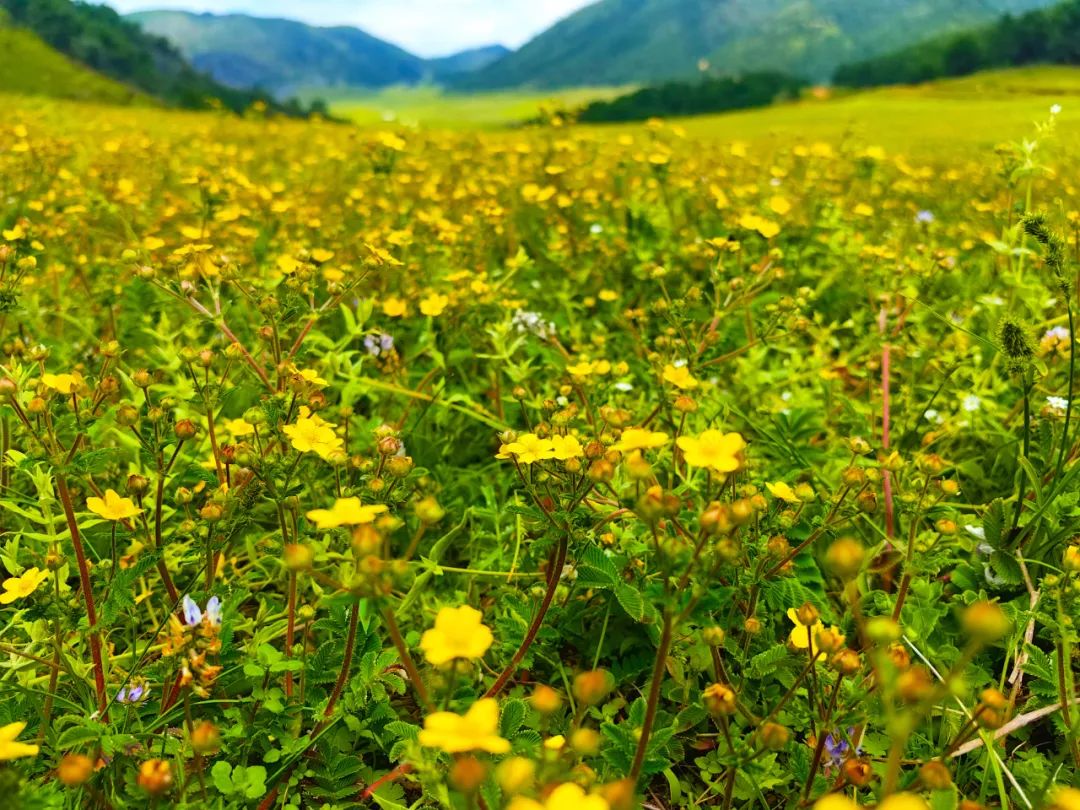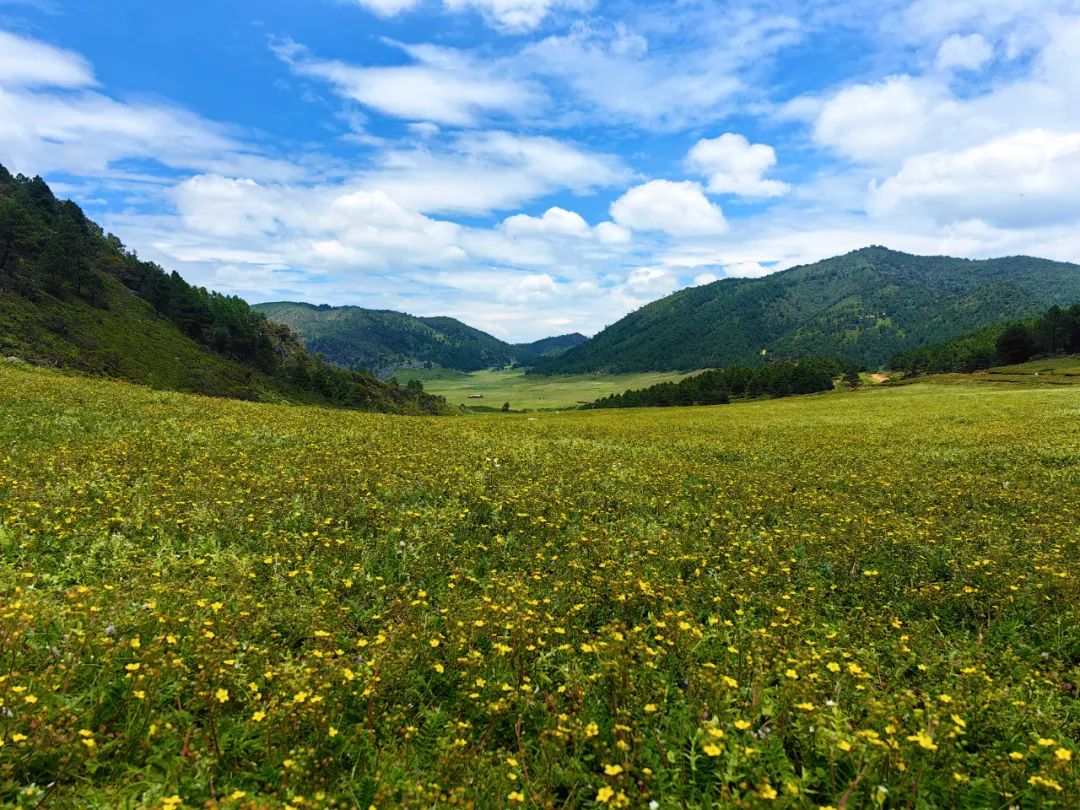草甸四面環(huán)山,綠茵茵的草甸被茫茫原始森林包圍,來到這里,仿佛進入了綠野仙蹤的原始秘境。每當(dāng)盛夏來臨,草甸上,各種不知名的野花次第綻放,黃的、白的、紫的......把草甸裝點得如夢似幻,置身其中,讓人拋塵忘憂、心曠神怡。此時,鳥兒們也在草甸上筑巢孵卵、繁衍后代,使整個草甸充滿了生機和活力。