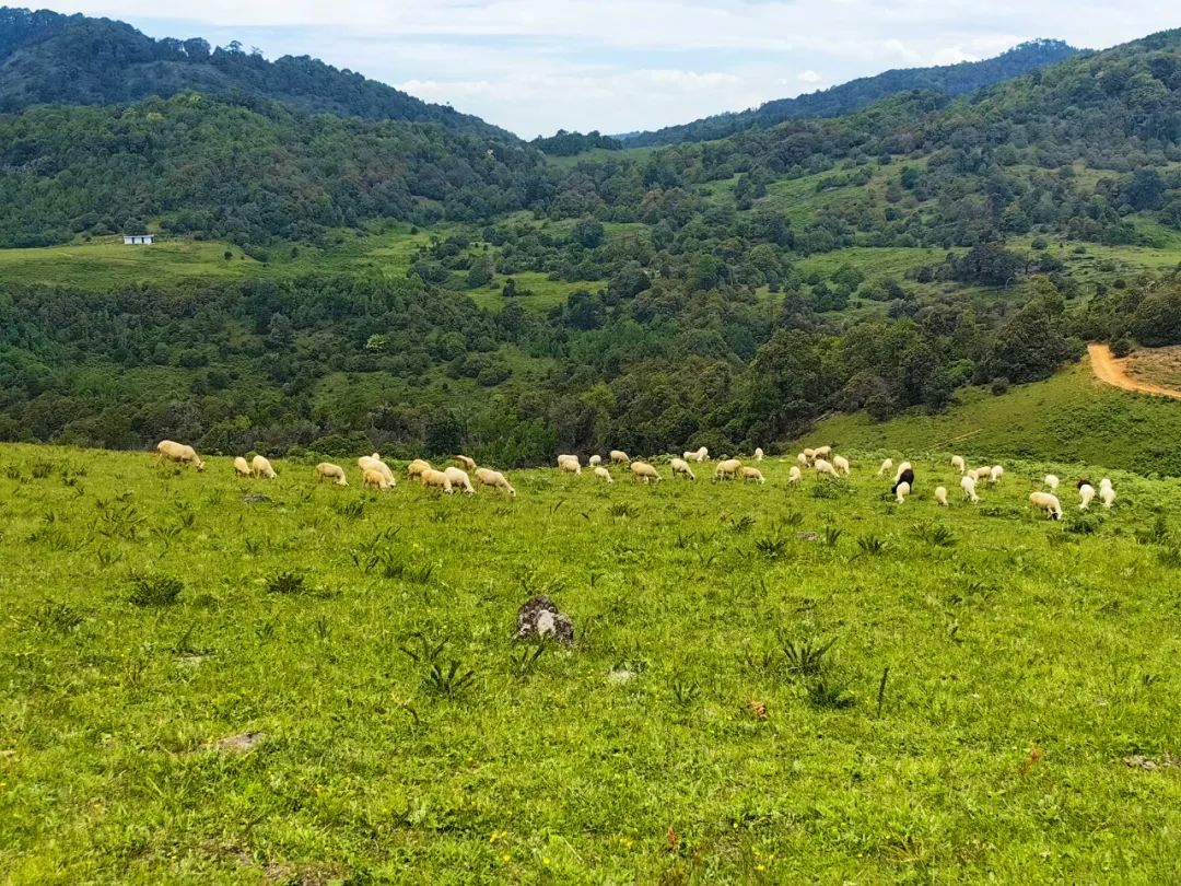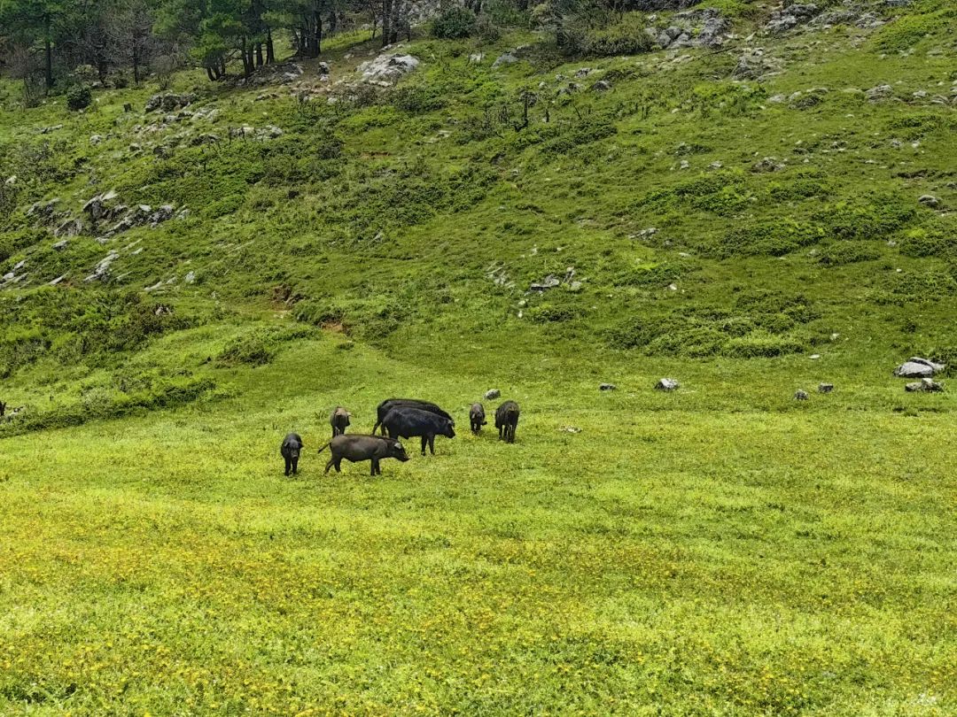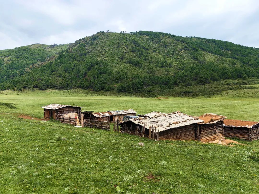 在草甸中央,還可看到有幾間簡易的房子,壘土成墻,壘木為屋,屋頂用木片或石棉瓦覆蓋,這就是當(dāng)?shù)卮迕穹拍辽畹囊粋€“家”。草甸上的牛羊低下頭嘎吱嘎吱地啃食著青草,悠閑地享受著大自然的“饋贈”,宛若許多小珍珠散落在碧綠的盤子里。牧民們白天把它們趕到山上去放,等到傍晚再趕回來。它們常年生活在大山里,吃著山上原生態(tài)的草,喝著天然的山泉水,自由地在草甸上奔跑,使其成為正宗的“原生態(tài)”。