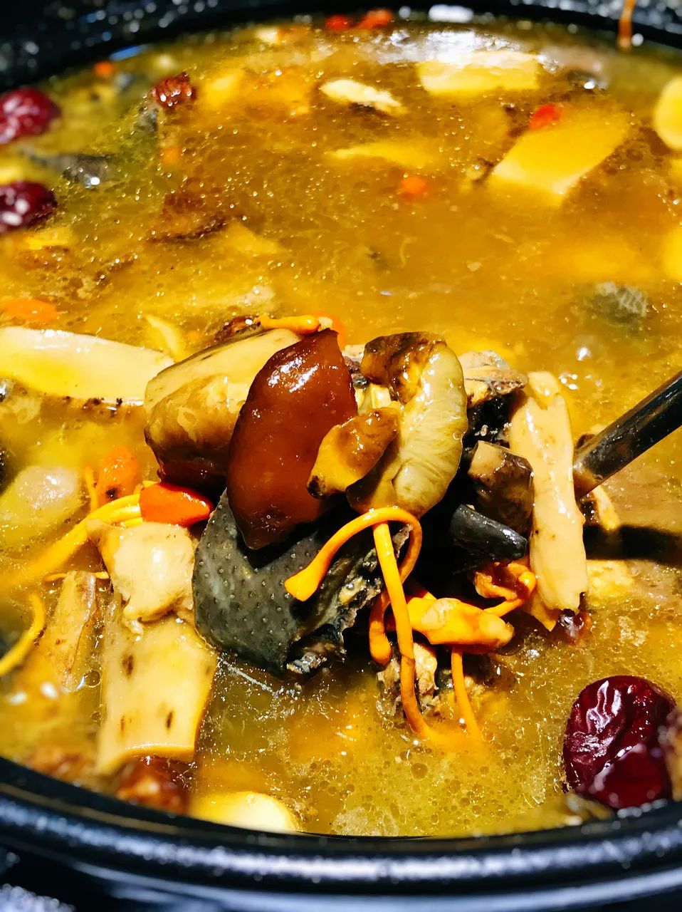 雞樅、松茸、牛肝菌、雞油菌、老人頭、竹蓀……那湯汁,滴滴都是精華。