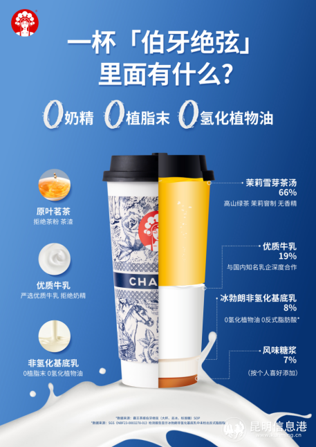 為此,霸王茶姬深入產(chǎn)業(yè)鏈源頭,以健康茶飲初心,引入全新“冰勃朗非氫化基底乳”,從基底層面真正實(shí)現(xiàn)0奶精、0植脂末、0氫化植物油,找到“健康”與“好喝”的最優(yōu)解。